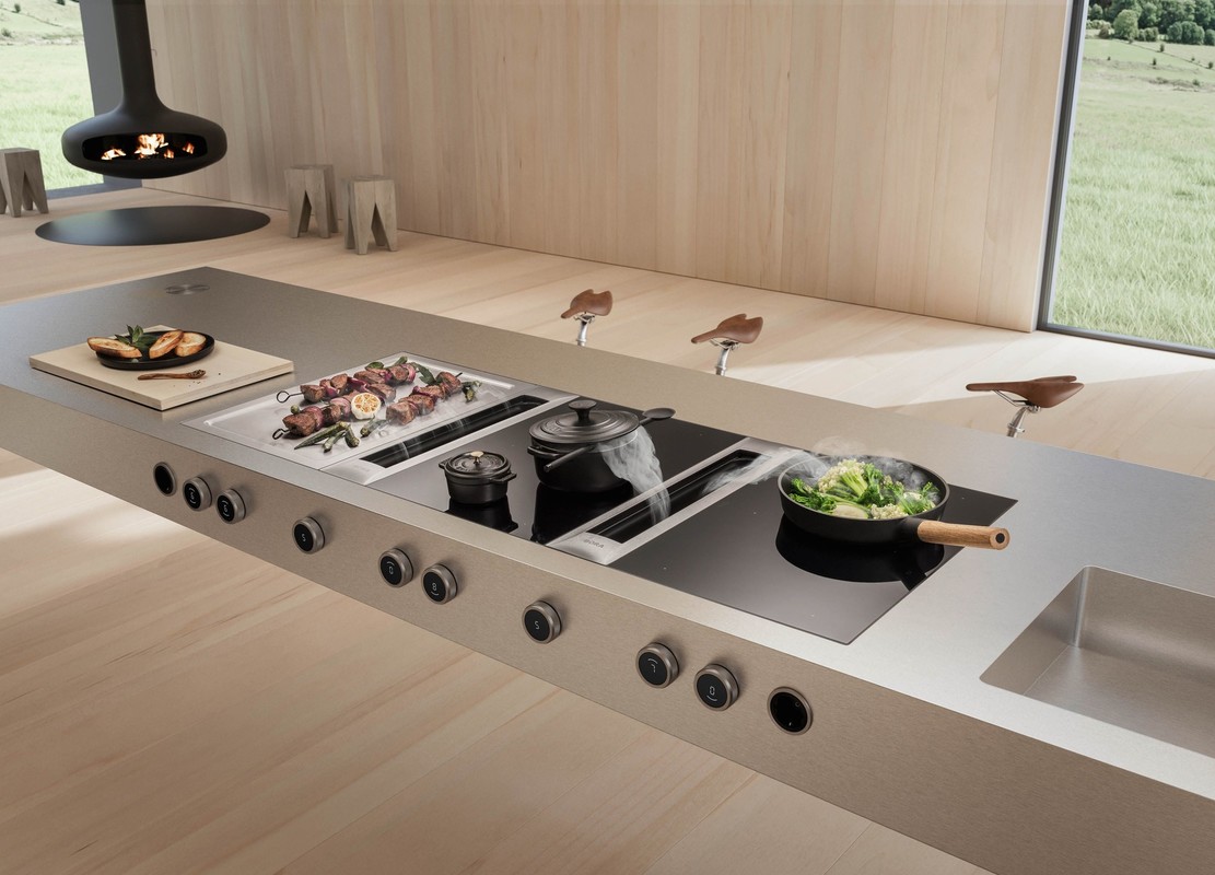 BORA sistem integrirane kuhinjske nape je edinstvena inovacija, ki vaši kuhinji omogoča nove dimenzije in možnosti. Sistem črpa hlape in paro navzdol točno tam, kjer nastaja - na kuhališču. Štirje učinkoviti sistemi integriranih kuhinjskih nap za kroženje zraka ali odvod zraka iz prostora