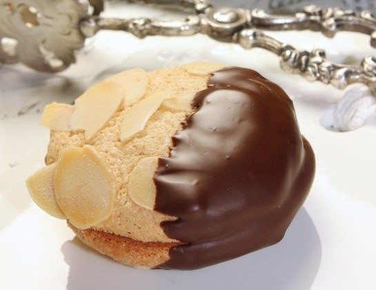 Zmešamo mleti sladkor, moko in mlete mandlje. Beljake, sladkor in vanilijo, stepemo v kompakten sneg. Mleto mešanico na rahlo vmešamo med beljake. Z dresirno vrečko nabrizgamo 2 cm velike krogce ( kot macarone ). Potresemo z mandljevimi lističi. Pečemo na 170 stopinj celzija, 15 minut. Polovičko napolnimo z marelično marmelado, ter prekrijemo z drugo polovičko.