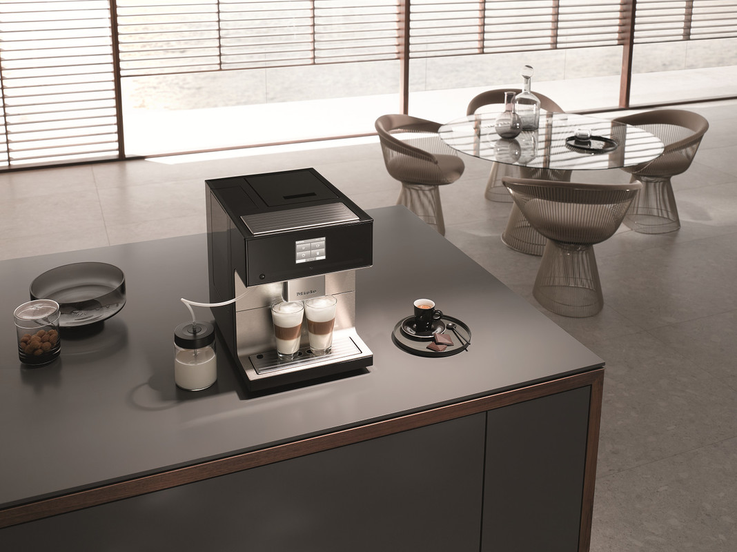Miele CM7 je zasnovan za poznavalce, kar velja tudi za njegov dizajn. Žlahtno ohišje je oblikovano s čisto oblikovno govorico povsem v slogu klasičnega kavnega avtomata. Puristični sijaj in visoka kakovost materiala zagotavljata, da je CM7 v okras vsaki kuhinji ali pisarni. Na voljo je v obsidian črni in elegantni briljantno beli barvi. Z udobnim prikazovalnikom C-Touch aparat CM7 omogoča posebej enostavno in intuitivno upravljanje. Z nekaj dotiki lahko izberete in prilagodite svoj najljubši napitek.