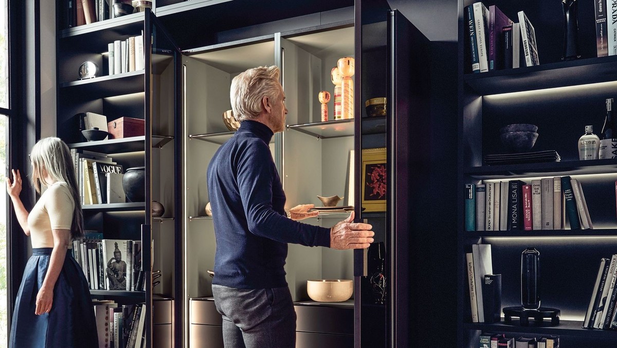 Nova steklena vitrina next125 je zasnovana še posebej elegantno, z nežnim in prefinjenim okvirjem v črni oniks barvi v kombinaciji z zatemnjenimi stekli in ekstravagantnim usnjenim ročajem. Nastavljiva LED osvetlitev v notranjosti vitrine po želji poudari kose, ki jih želite še posebej izpostaviti. Vgrajena izvlečna predala pa sta kot nalašč za shranjevanje manjših predmetov. Tip - ON mehanski sistem pa doda piko na i, celostnemu videzu in poudari sodoben dizajn streklene vitrine. Steklena vitrina je na voljo kot samostojna različica z elegantnimi nogami ali pa lahko stoji na podstavku v nizu visokih enot.