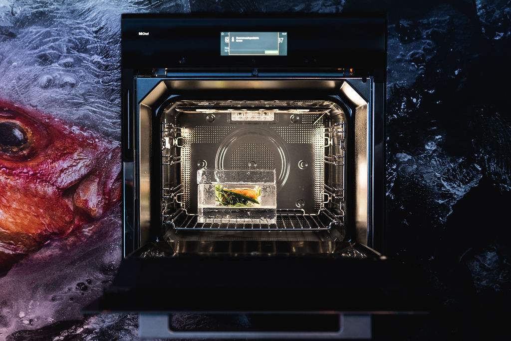 Je mogoče speči popoln file trske v ogromni kocki ledu? S predstavitvijo svojega novega vrhunskega izdelka, pečice Dialog, je Miele dokazal, da je to mogoče in tako vsem nam ponudil ščepec čarobnosti. Riba v kocki ledu doseže popolno temperaturo in teksturo – z lahkoto bi jo kot predjed ponudili v kateri od nagrajenih restavracij – ob tem pa se led v pečici ne stopi.