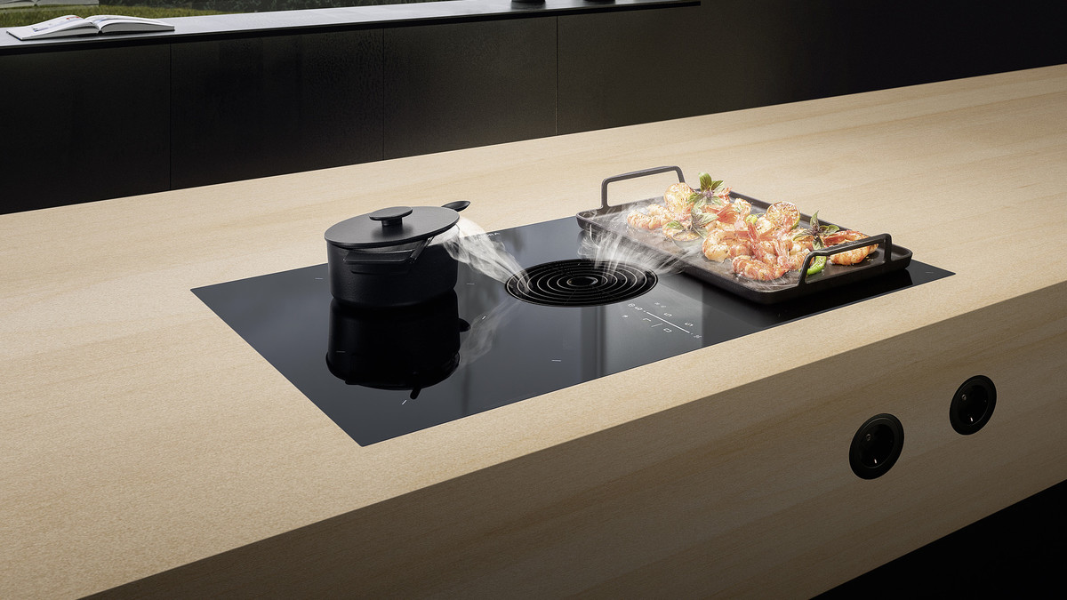 Primeren za kuhinjsko posodo vseh velikosti in oblik. Veliki pekači ali lonci z manjšo površino - zahvaljujoč indukcijski coni levo in FLEX-indukciji desno je vsaka posoda optimalno prepoznana.